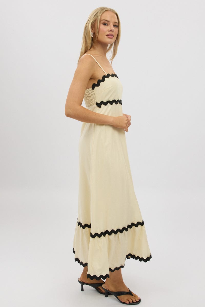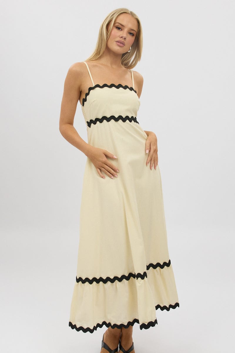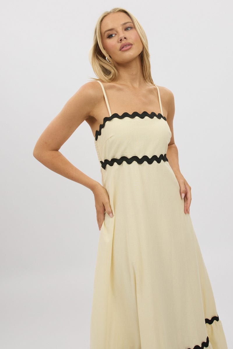 The Mila Strapless Maxi Dress is the epitome of relaxed elegance. Featuring delicate spaghetti straps and a flowing A-line silhouette, this dress is designed for effortless movement and all-day comfort. The contrast wavy trim adds a touch of playful charm, making it perfect for breezy summer days or casual outings. Pair it with sandals and minimal accessories for a timeless and airy look.